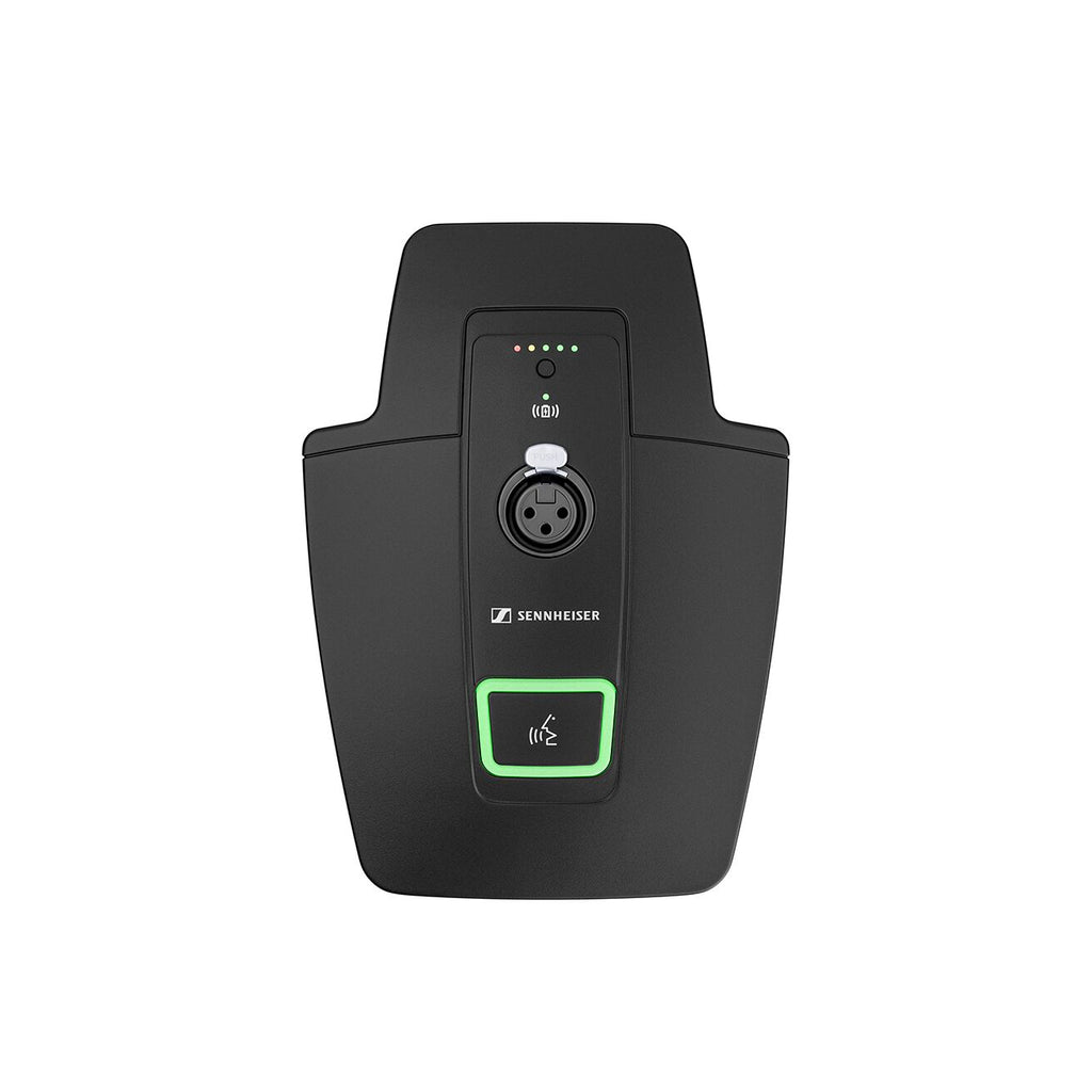 Wireless table stand transmitter with 3-pin XLR connector. Compatible with any gooseneck microphone without LED ring for a 3-pin variant. Includes EW-DX table stand transmitter, (1) BA 40 rechargeable battery, quick guide and safety instructions.